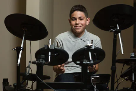 For younger children (ages 3–5), we recommend starting with our early childhood program, which builds the foundational skills—rhythm, listening, and coordination—that prepare them for instruments like drums.